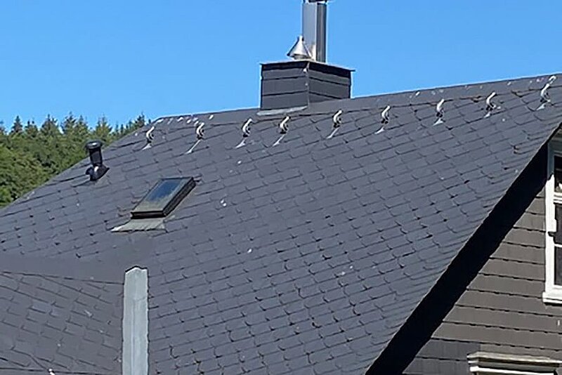 Neben der Sicherung von Personen, dienen unsere Dachhaken auch als Anschlagpunkt für Sicherheitsgeschirre und bieten die Möglichkeit Dachdeckerleitern einzuhängen und Dachdeckerstühle zu befestigen.