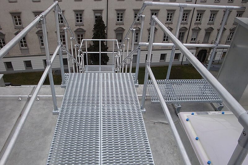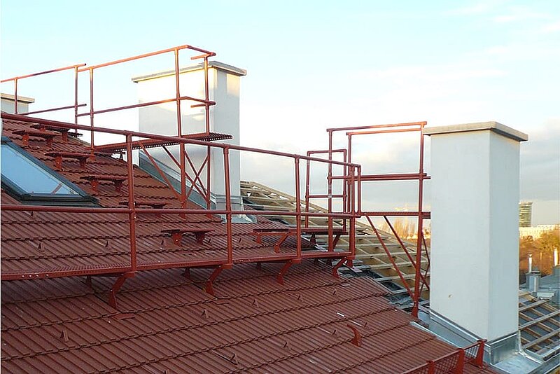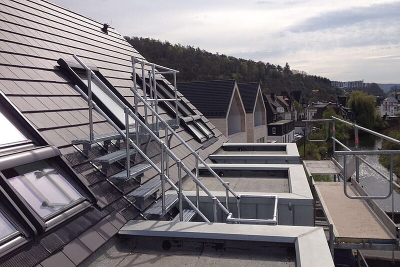 Eine Laufrostanlage beispielsweise kann zu Wartungszwecken oder als Rettungsweg genutzt werden. Ein Dachtritt bietet Schornsteinfegern und anderen Berufsgruppen eine einfache und sichere Möglichkeit Dächer zu begehen.